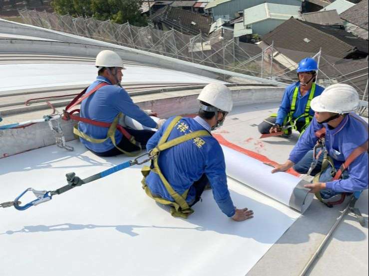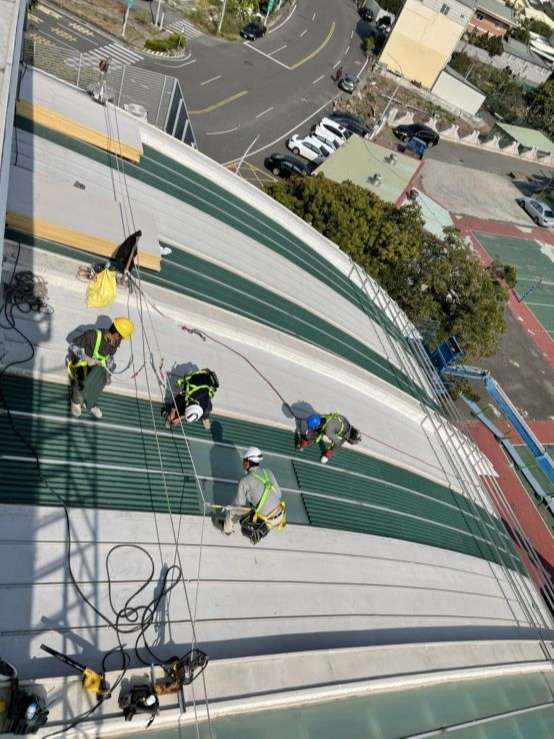 3.108年申請防水隔熱經費修正設計理念,改以金屬板及防水膜阻隔輻射熱,以防水膜包覆改善矽利康填縫經久脫膠龜裂問題,讓室內溫度降溫達攝氏4度以上.讓活動中心可以安心使用不再煩惱過熱問題.