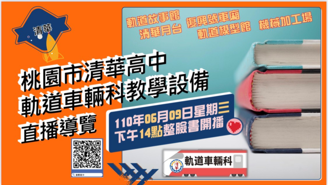 本校軌道故事館、軌道模型館、復興號車廂、清華月台及機械加工場。