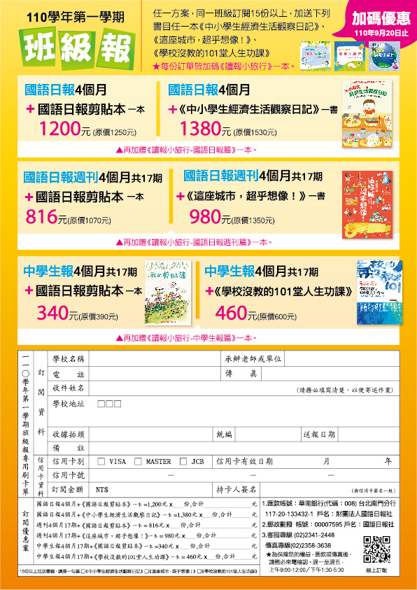 即日起推出「110-1學期班級報」優惠訂閱專案,此案訂閱期間為4個月。