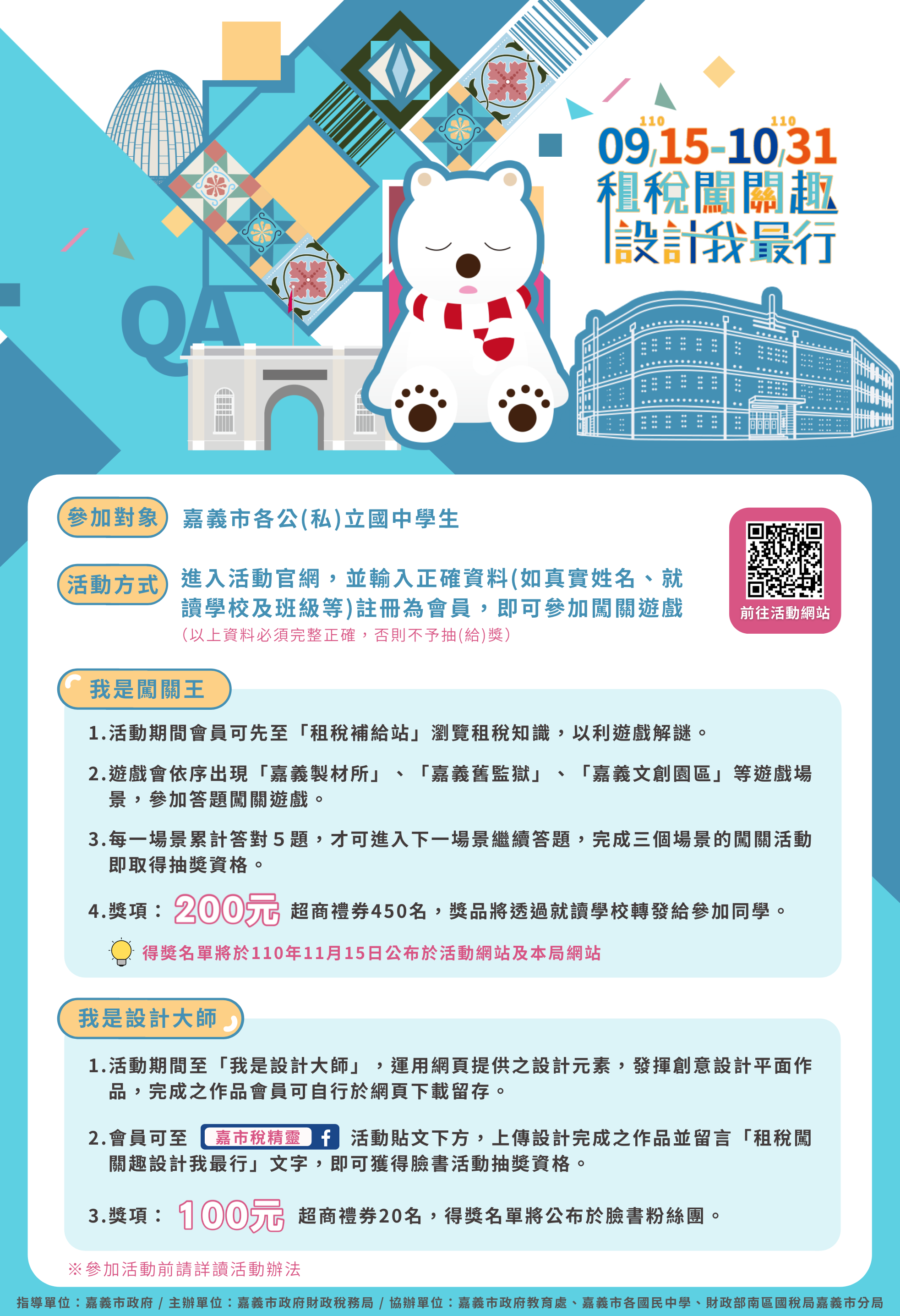 (一)活動官網註冊會員後進行「我是闖關王」及「我是設計大師」網路闖關及平面作品設計遊戲。